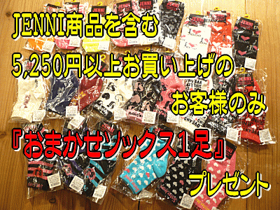 【JENNI商品を含む5,250円以上お買上げのお客様のみ】JENNI(ジェニィ)ノベルティ・おまかせソックス1足